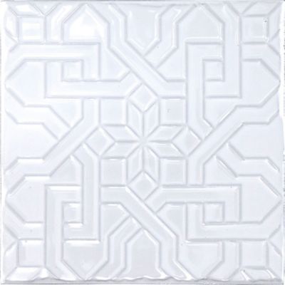 With bright white coloration this 6 x 6 decorative tile dazzles with mediterranean flair bringing warmth and feelings of luxury.